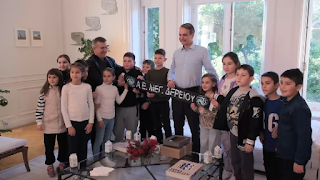Ο Πρωθυπουργός αντάλλαξε ευχές και δώρα για τις γιορτές με τα παιδιά, συζήτησε με τους νεαρούς μαθητές, τους εκπαιδευτικούς και τους γονείς που τα συνόδευαν για τη ζωή στο σχολείο και το χωριό τους, ενώ είχε και την ευκαιρία να ακούσει τις εντυπώσεις τους από την επίσκεψή τους στην Αθήνα. Τα παιδιά προσκάλεσαν τον Κυριάκο Μητσοτάκη να επισκεφθεί το σχολείο τους.